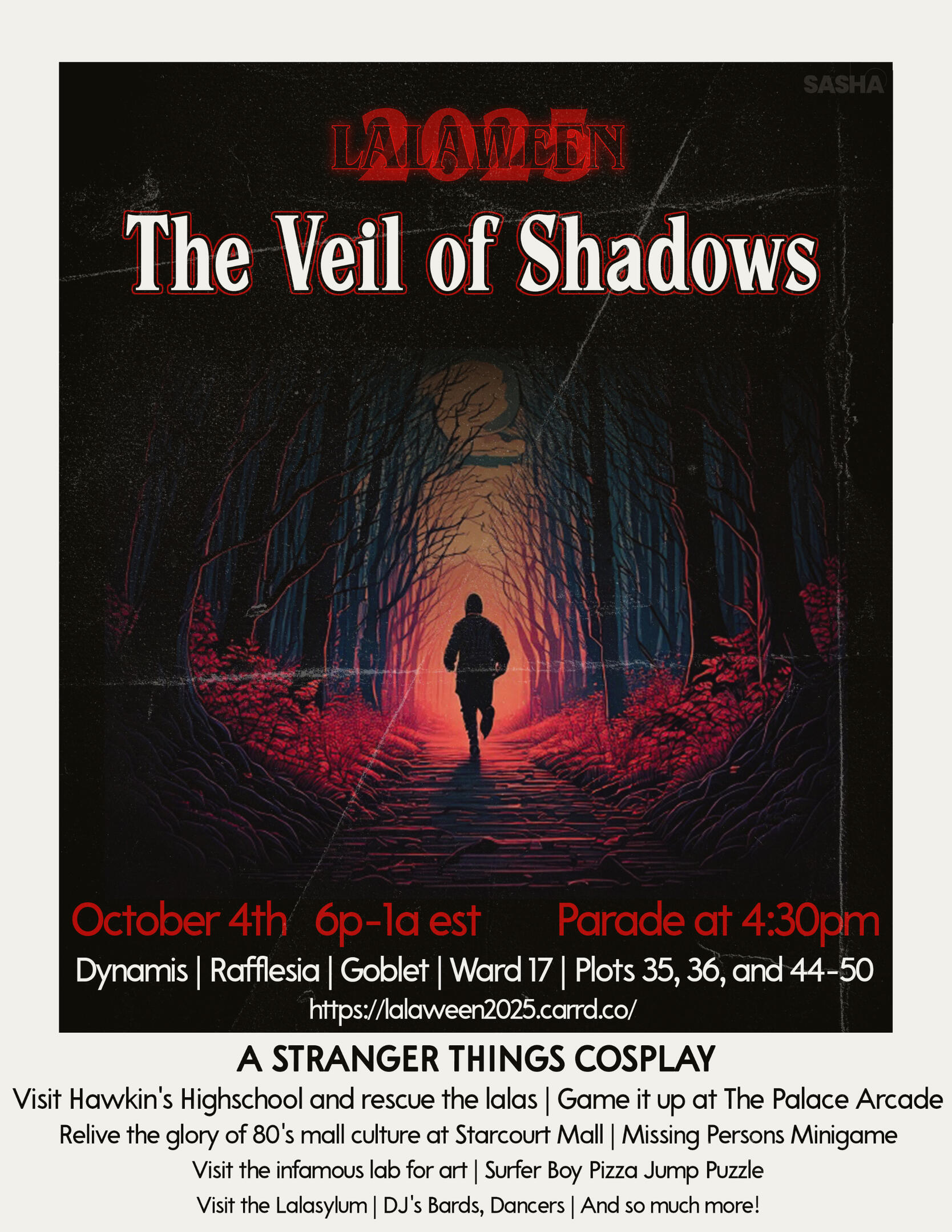 Halalaween (lalaween for short) is an annual event begun in 2023 that is Lala focused but open to all. Lalaween is an exciting night filled with lots of silly fun! this year's lalaween theme is a stranger things cosplay! Check out the Q&A below for more info!